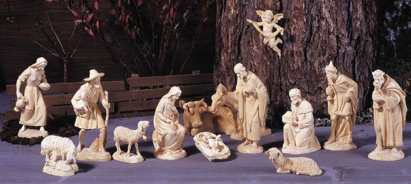 In time, various European regions developed distinctive crèche styles. The mountainous Tyrol takes a prominent position in the crèche tradition, with the Gröden valley, the home of ANRI, known as the centre for producing hand carved crèche figures. It was there that the Bethlehem scene first reflected a native landscape, including snow-covered stables and huts.